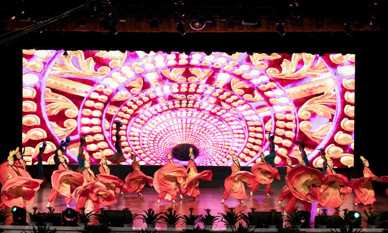 掀开百年团史,青春的骄傲与荣光已深深嵌入几代人的记忆里,薪火相传,弦歌不断。一首旋律优美的《毕业歌》拉开了晚会第一篇章的帷幕。情景剧《破晓》将我们带入了那充满传奇的激情岁月;诗朗诵《致先辈》带着全场观众一起感受了信仰穿越世纪的灯盏;老师们带来的歌伴舞《校园歌曲联唱》迎来掌声如潮,让人回想起“白日不到处,青春恰自来”的默默努力,回想起“书生意气、挥斥方遒”的奕奕神彩;民族交融,无坚不摧;民族同心,无往不胜。一曲民族组舞《母亲是中华》更是掀起了晚会的高潮……
